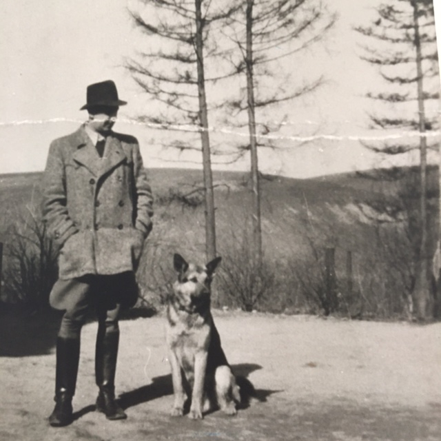 Bild 1: Vor dem Krieg in Gröben mit Frido Finno Fitz von der Niederlausitz, unserem Schäferhund, der auf der Flucht verschollen ist.