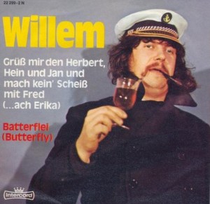 Aber zurück zu Willem, der in seiner Jugend eine Ausbildung zum Teeverkoster absolviert hatte und als Kaufmann u.a. als Ostblock-Experte eines Industriekonzerns tätig war. (Angeblich konnte er sich in acht Sprachen fließend unterhalten.) Neben seinem Job als Musikverleger pendelte Willem seit 1972 zwischen Hamburg und Saarbrücken, wo er als kundiger Musikjournalist im Hörfunkprogrramm des Saarländischen Rundfunks die Sendung “Pop Corner” moderierte und dort vornehmlich über die Hamburger Musikszene berichtete. Bald darauf ging Willem, der selbst Banjo und Gitarre spielte, auch eigene musikalische Wege und veröffentlichte mehre Singles und später auch Langspielplatten. Zu einer der Hymnen der “Hamburger Szene” avancierte 1975 sein unter dem Pseudonym “Daddy’s Group” erschienener Song “Lass die Morgensonne (endlich untergehn)”. Später allerdings geriet er mit Liedern wie “Tarzan ist wieder da” (1977) immer mehr auf die Blödel-Schiene. In den Achtzigern wurde Willem dann zum gefeierten Radio-Moderator beim NDR (“Hits mit Willem”, “Norddeutsche Top Fofftein”, “Musikraten und Singen”) und wirkte in mehreren Filmen als Schauspieler mit, so in der legendären Szene in der Rockerkneipe “Chrome de la Chrome” im ersten Otto-Film (1985). Nach Mauerfall und Wiedervereinigung moderierte Willem für Antenne Mecklenburg-Vorpommern und engagierte sich in der Stadt Wismar.