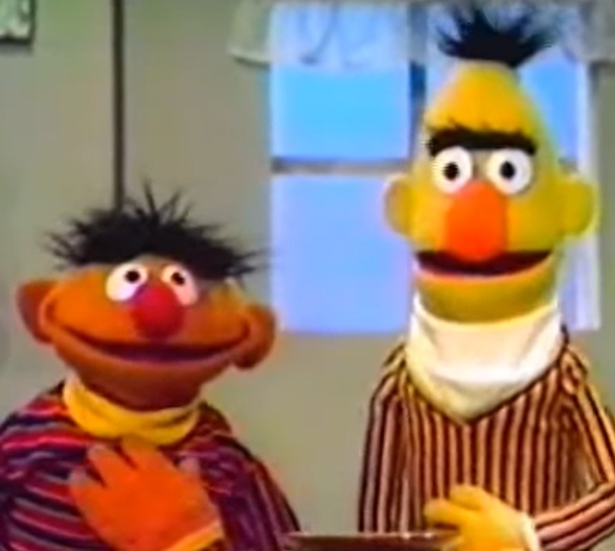 Für mich jedenfalls war das westliche Reformpädagogik-Fernsehen ganz großartig. Zumal die Macher der deutschen “Sesamstraße” gewissermaßen auch der ersten Generation dieser besagten Erziehung im neuen Geiste angehörten. Alles wirkte so frisch und unbekümmert, so experimentell und improvisiert. Und wie liebte ich die Puppen und Darsteller, besonders eine ganze Reihe von Nebenfiguren. Vor Graf Zahl, das muss ich zugeben, hatte ich in jüngeren Jahren noch richtig Angst, aber natürlich war es ein wohliges Gruseln. Umwerfend komisch war z.B. Don Schnulze, der genialische Sänger und Pianist, der immer wieder verzweifelt mit dem Kopf auf die Tasten schlug, wenn ihm zu seinen Kompositionen die passende Textzeile nicht einfallen wollte. Nicht minder witzig war Schlemihl, der zwielichtige Geschäftsmann, der die Verlautbarungen seines Gegenübers vorzugsweise mit einem “Psssst, genau!” kommentierte. Oder Herbert Leichtfuß, der freundliche Erfinder, der immer geduldig seine neuesten technischen Werke erklärte und sich nicht einmal durch unkontrollierte Aktionen des Krümelmonsters aus dem Konzept bringen ließ. Auch Sherlock Humbug, der sich am Ende seiner Ermittlungen meistens selbst als Übeltäter überführte, sich für diese Erkenntnis aber anschließend noch von seinen jeweiligen Auftraggebern bezahlen ließ, war eine großartige Figur. Und dann natürlich Ernie und Bert, die beiden grundverschiedenen alterslosen Freunde eindeutig männlichen Geschlechts, die ohne Eltern oder sonstige Erzieher in einer gemeinsamen Wohnung zusammenlebten und sogar das Bett miteinander teilten. Kein Wunder, dass sie Jahrzehnte später zu Ikonen der Schwulenbewegung avancierten…