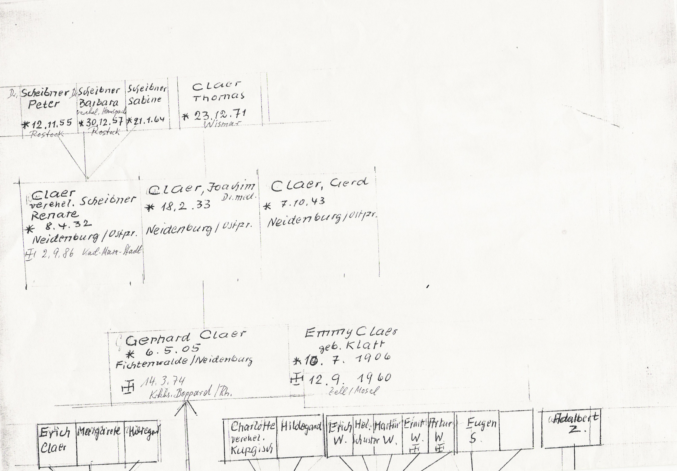 Zu meiner großen Überraschung erhielt ich vor einigen Monaten Post von einem Manfred Claer aus der Nähe von München. Er entstammt einer seit weit über hundert Jahren im Rheinland, dort insbesondere in Stolberg, ansässigen Familie Claer mit Wurzeln in Ostpreußen. (Ich hatte bisher angenommen, die Stolberger Linie, die mir bei meinen Recherchen im Internet schon häufiger begegnet ist, habe nichts mit den ostpreußischen Claers zu tun. Aber so kann man sich täuschen!)