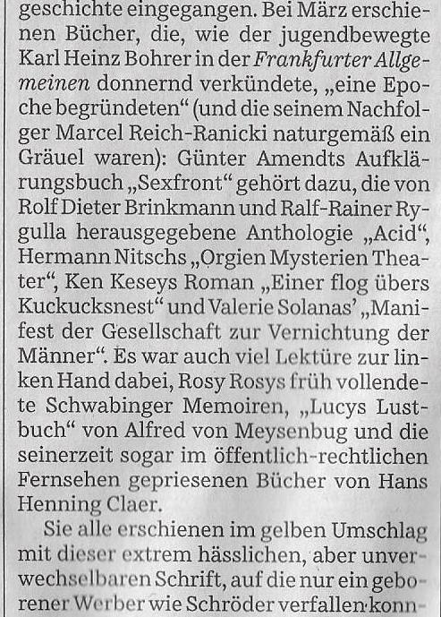 Thomas Steinfeld schreibt in seinem besagten Feuilleton-Beitrag u.a.: „Im deutschen Sprachraum gab es, den vielen Armutskindern und Hungerleidern zum Trotz, keinen romantischen Dichter, der in solcher Not aufwuchs und den dieses Elend, einiger buchhändlerischer Folgen ungeachtet, auch nie verließ. Clares Schulbildung war fragmentarisch, die Sprache auch seiner Gedichte von seiner Herkunft aus dem ländlichen Proletariat geprägt, die Grammatik zumindest persönlich. Dennoch schrieb er, zum Erstaunen schon der Zeitgenossen, mehr als dreitausend Gedichte… Einer seiner Pfleger im ‚lunatic asylum‘ berichtete, von John Clare sei im täglichen Umgang vor allem Wirres zu vernehmen gewesen. Sobald er indessen dichtete, habe er sich klar und konzentriert ausgedrückt.“