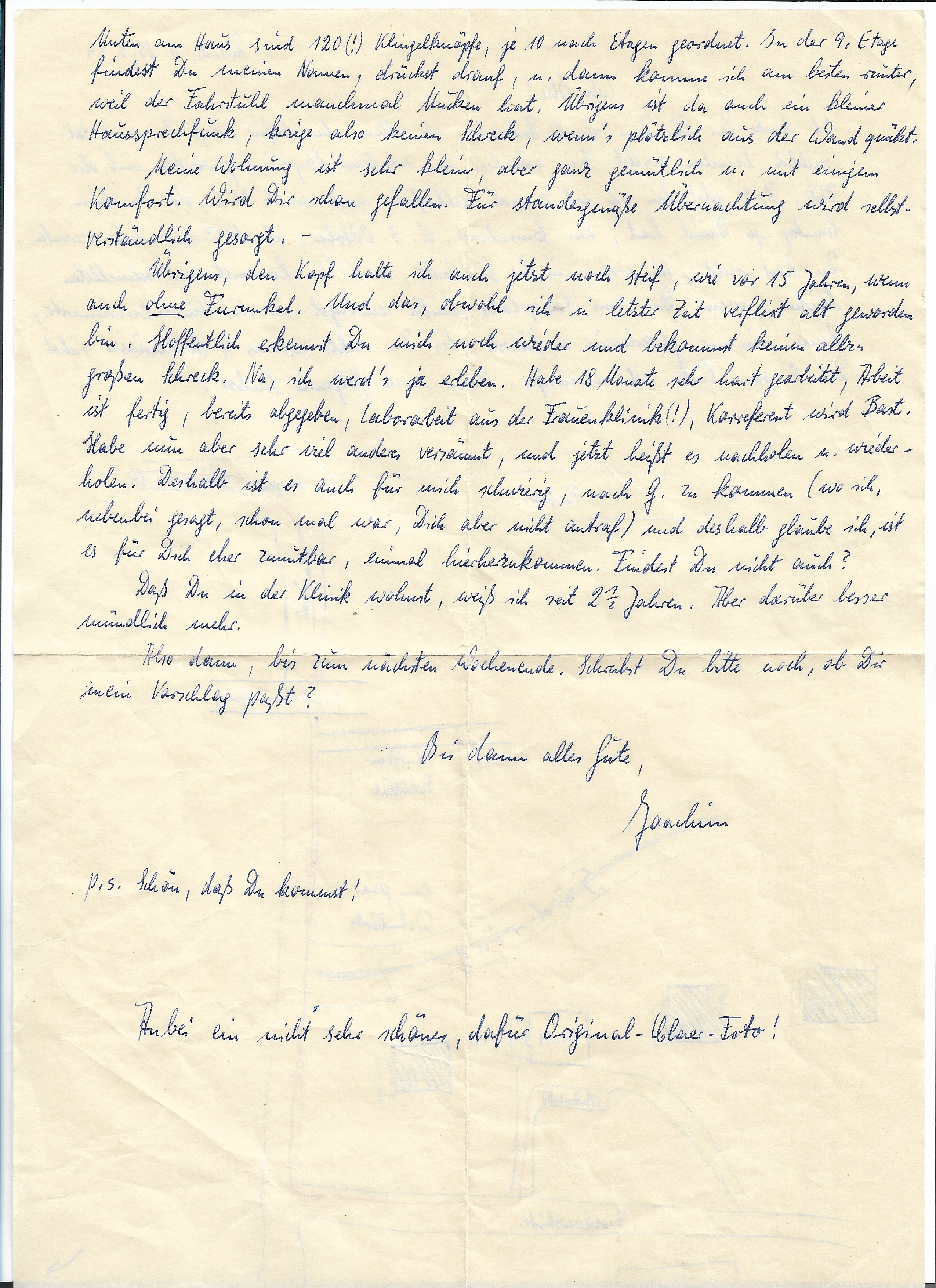Nun aber zu meinem Vater Joachim Claer (1933-2016), der ebenfalls ein bemerkenswerter Schreiber war, wenngleich er leider keine größeren schriftstellerischen Werke im eigentlichen Sinne hervorgebracht hat, sondern sich ganz überwiegend auf die kleinen Formen der Alltagskommunikation beschränkt hat, die aber dafür glücklicherweise recht gut dokumentiert sind, vor allem was den Briefwechsel mit meiner Mutter Ilse Claer geb. Nützmann (ebenfalls 1933-2016) betrifft.