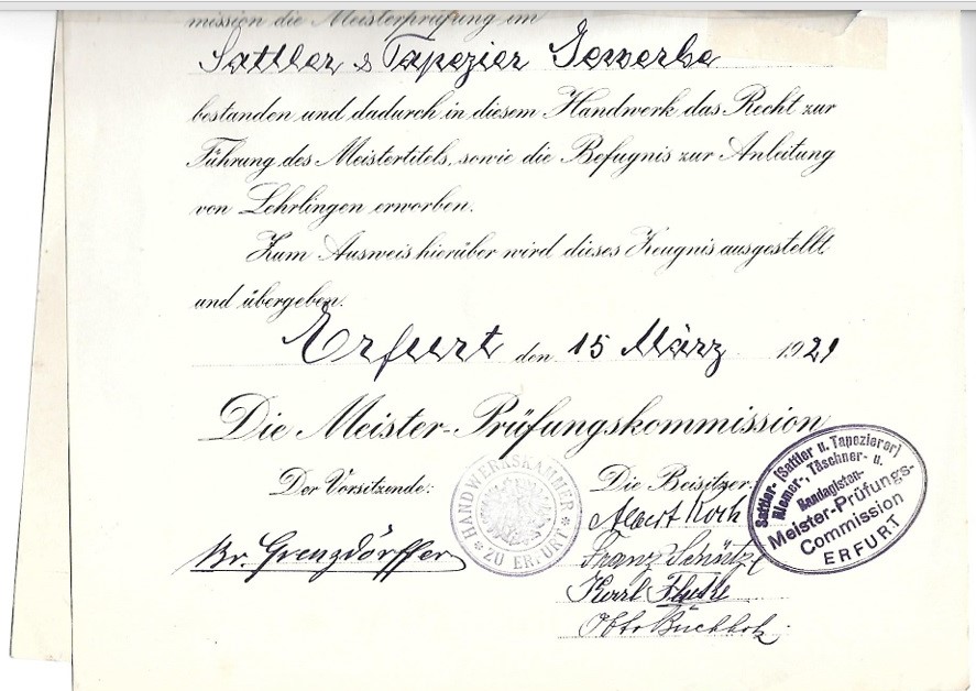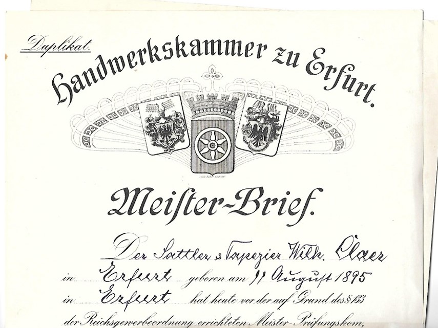 Meisterbrief des Friedrich Wilhelm Claer (1895-1959)