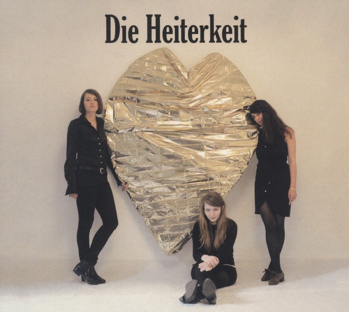 Das Frühwerk von „Die Heiterkeit“ also, für das sich wohl hauptsächlich jene interessieren dürften, die bereits durch die späteren Glanzlichter „Pop & Tod, I +II“ (2016) und insbesondere „Was passiert ist“ (2019) auf den Geschmack gekommen sind… (Wir haben damals jeweils an dieser Stelle darüber berichtet.) Da ist also zunächst einmal das vor genau einem Jahrzehnt erschienene Debüt „Herz aus Gold“, das sich zwar noch nicht unbedingt als künstlerischer Höhepunkt, aber doch zweifellos schon als interessanter Versuch ansehen und anhören lässt. Hier und da gibt es schon recht gelungene Details, doch fehlt oftmals noch das Zündende, vor allem bei den Texten. Man spürt, dass diese Platte weit weniger als alle Folgenden von Stella Sommer dominiert wurde und wie die Musikerinnen hier um ihren Stil ringen, den sie noch nicht vollständig gefunden haben. Musikalisch bestimmen Schrammel-Gitarren das Bild. In den Songtexten herrscht noch eine Art jugendlicher Ironiezwang. Das große Pathos wird, anders vor allem als auf der großartig-opulenten „Was passiert ist“ (2019), noch gescheut. Auch steht Stella Sommers überwältigende Stimme hier noch längst nicht so im Vordergrund, wie es auf ihren späteren Alben der Fall sein wird.