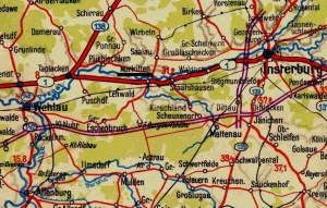 – Und schließlich hat auch der Müller Hermann August (oder August Hermann) Claer, Jahrgang 1833, ein älterer Bruder meines Ururgroßvaters Franz Claer, in Geidlauken im Kreis Labiau eine Familie gegründet, der 1872 der spätere Fuhrmann Franz Richard Claer entstammte, der ins Rheinland auswanderte. Und Labiau ist der nördliche Nachbarkreis von Wehlau. Wir befinden uns im Gebiet östlich von Königsberg, westlich von Gumbinnen, wo ja vermutlich die ersten ostpreußischen Clercs/Clairs ab 1712 in der Schweizer Kolonie ansässig waren.