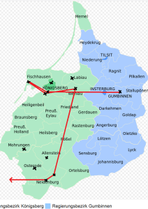 Die untenstehende Karte der ostpreußischen Kreise gibt einen guten Überblick über die Wanderbewegungen der ostpreußischen Claers in meiner (männlichen) Namenslinie: