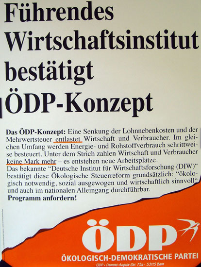 Das Wahlergebnis war enttäuschend. Der Stimmenanteil sank trotz aller Bemühungen von 0,5 auf 0,3 Prozent. Einer meiner Freunde, der bei der Kandidatenvorstellung dabei war, verriet mir, dass er immerhin mit seiner Erststimme aus Mitleid ÖDP gewählt hatte. Tapfer besuchte ich aber von Zeit zu Zeit noch weiter als Nicht-Mitglied die Versammlungen und las die Partei-Zeitschrift, bis sich vor der Bundestagswahl 1998 Bündnis 90 / Die Grünen haargenau die ÖDP-Kernforderung einer ökologischen Steuerreform zu eigen machten und diese nach der Wahl auch umsetzten. Die ÖDP war in meinen Augen nun wirklich überflüssig. Außerdem waren inzwischen für mich auch andere Dinge wichtiger geworden als die Politik. Kurzerhand bestellte ich die Parteizeitung ab und ging nicht mehr zu den Versammlungen. Die ÖDP existiert noch heute und hat vor allem durch die Initiierung von Volksentscheiden, zuletzt in Bayern zum Nichtraucherschutz, auf sich aufmerksam gemacht. Bei der Bundestagswahl 2009 erreichte sie 0,3% der Stimmen.